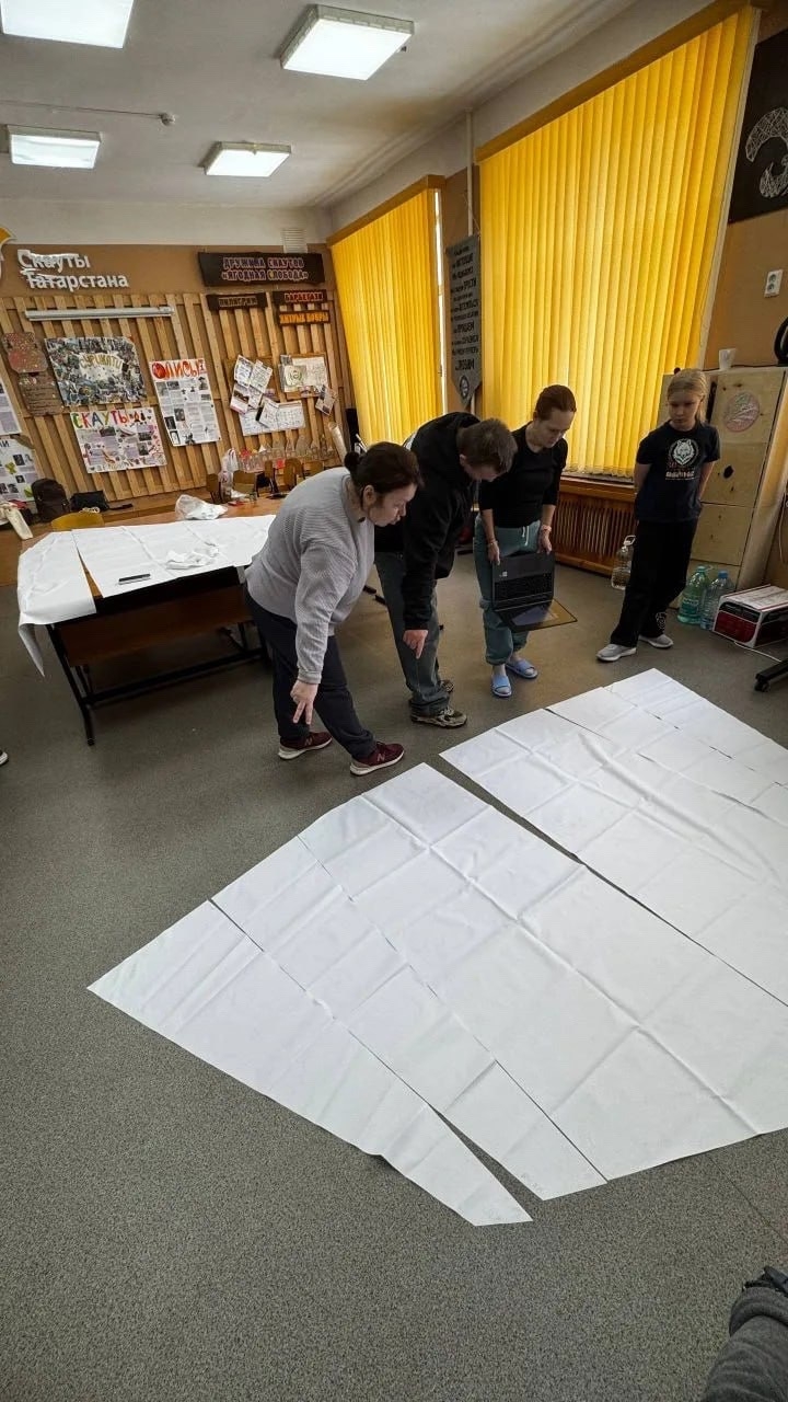 В это же время вторая часть экипажей начала пошив парусов в Заречье. Ребята склеивали части парусов, чтобы мы на следующем сборе смогли их сшить.