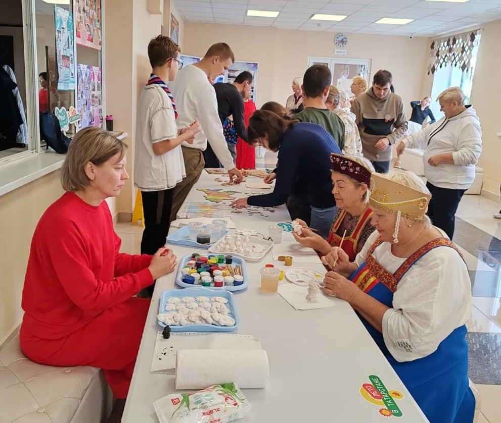 Это событие объединило серебряных волонтеров и детей с ограниченными возможностями. На разных площадках каждый нашел занятие по душе: от росписи гипсовых фигур до шерстяной живописи и гончарного искусства.